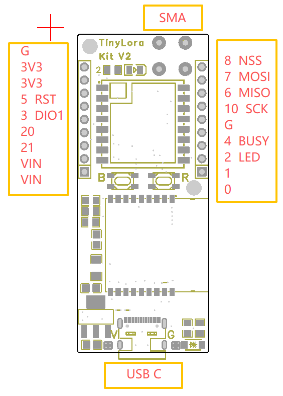 对外接口:ESP32 C3的GPIO、Lora的SMA天线、USB C接口